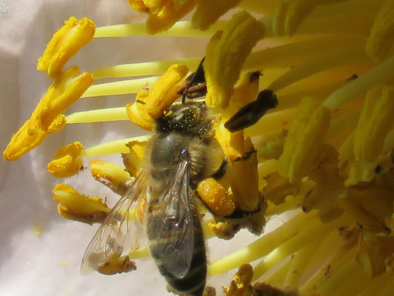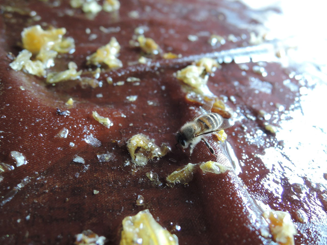 最初の写真は、活動初日に初めにやってきた日本ミツバチ。