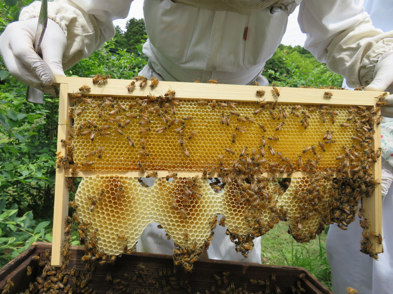 病気の蜂がいないか、女王蜂がきちんと卵を産んでいるか、蜜や花粉は足りているだろうか。